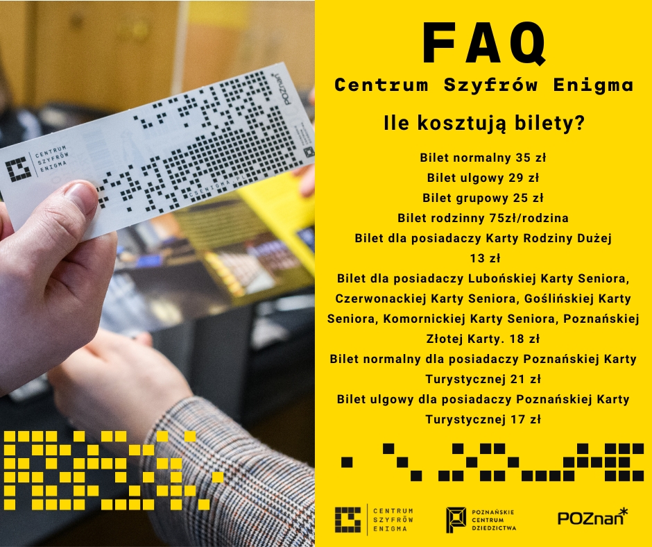Bilety możesz kupić w kasie znajdującej się w Centrum Szyfrów Enigma oraz na stronie internetowej csenigma.pl. Po kliknięciu w ikonę „bilety” zostaniesz przekierowany do dedykowanej strony internetowej.