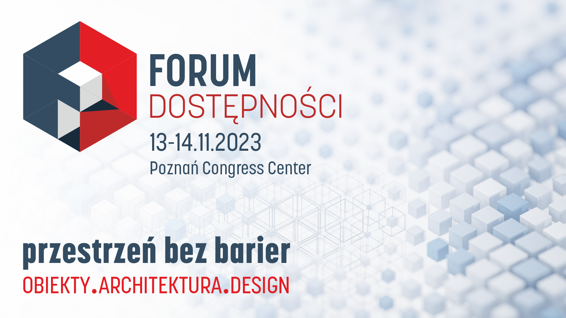 Pierwsza edycja FORUM DOSTĘPNOŚCI odbędzie się w dniach 13-14 listopada 2023 roku w Poznań Congress Center. To wyjątkowe spotkanie poświęcone będzie projektowaniu uniwersalnemu, dostępności architektonicznej, wyzwaniom związanym ze zmianami prawnymi, społecznymi oraz kierunkom rozwoju projektowania architektury i produktów dostępnych dla wszystkich.