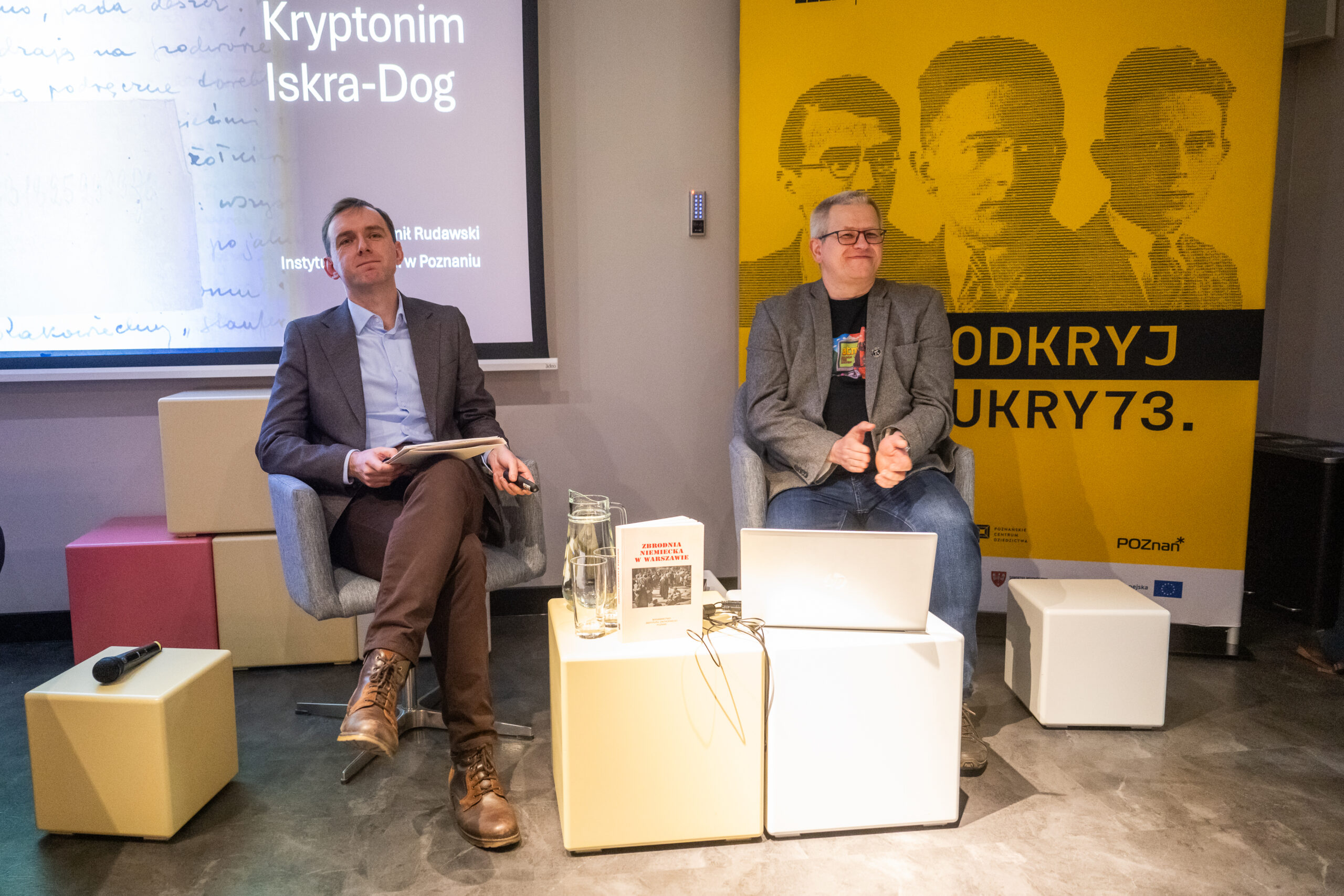Nic dziwnego, bo temat prelekcji dr. Bogumiła Rudawskiego oraz Krystiana Sobańskiego był naprawdę intrygujący: akcja Iskra-Dog zorganizowana przez poznańskiego historyka prof. Edwarda Serwańskiego oraz Irenę Trawińską jeszcze w trakcie walk powstania warszawskiego 1944 roku. A wszystko po to, by w bezpieczny sposób, szyfrując dane świadków, zebrać dowody niemieckich zbrodni na ludności cywilnej. Dowody, które zostały wykorzystane w trakcie głównego procesu norymberskiego. Przy okazji dowiedzieliśmy się, jak 77 lat później p. Krystian odszyfrował ukryte dane autorów relacji, posługując się m. in. wiedzą o sposobach utajniania informacji przez Armię Krajową.