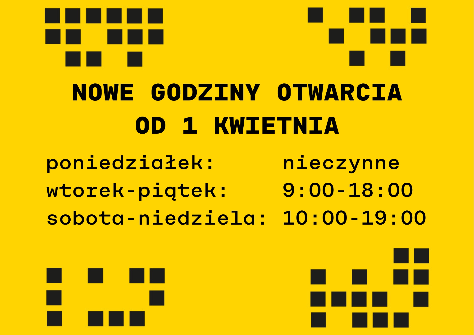 Ze względu na rozpoczynający się sezon letni, wydłużamy godziny działania naszej ekspozycji. Od 1 kwietnia będziecie mogli nas odwiedzać w następujących godzinach: