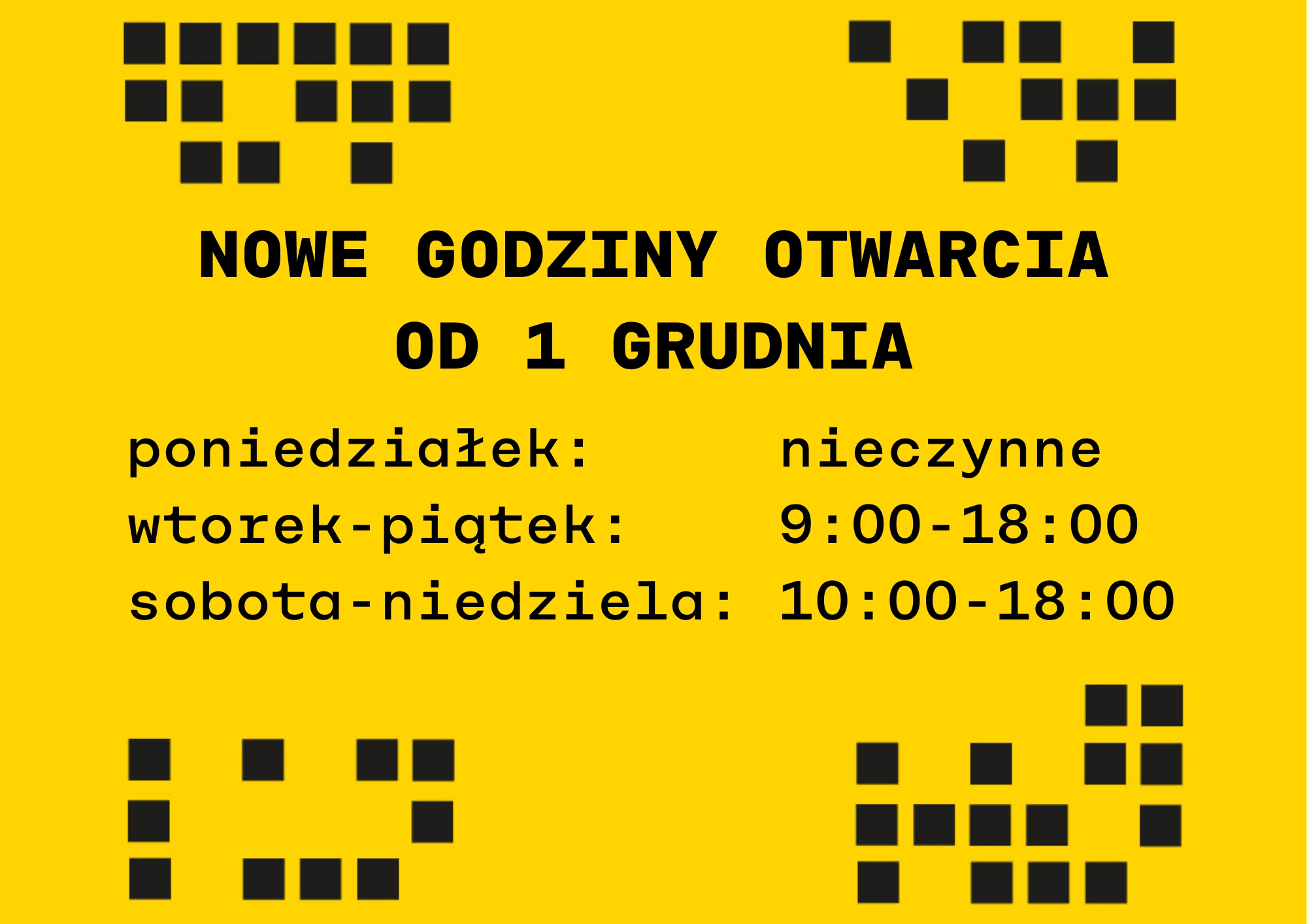 jesteśmy otwarci w godzinach 9:00-18:00