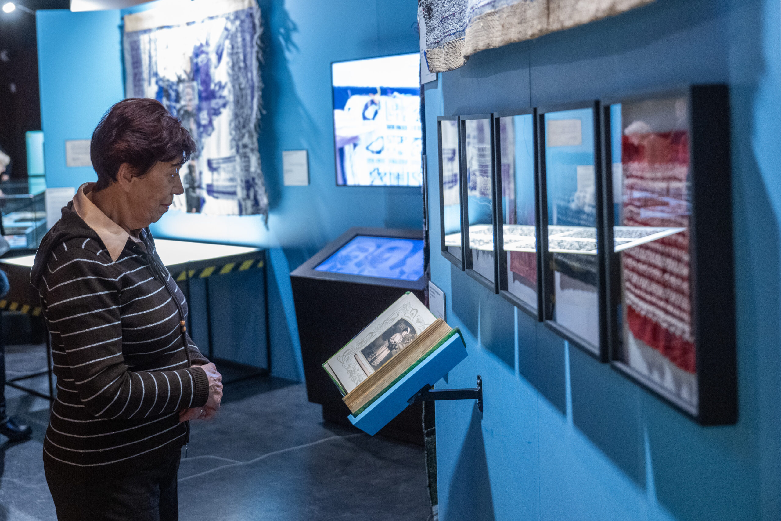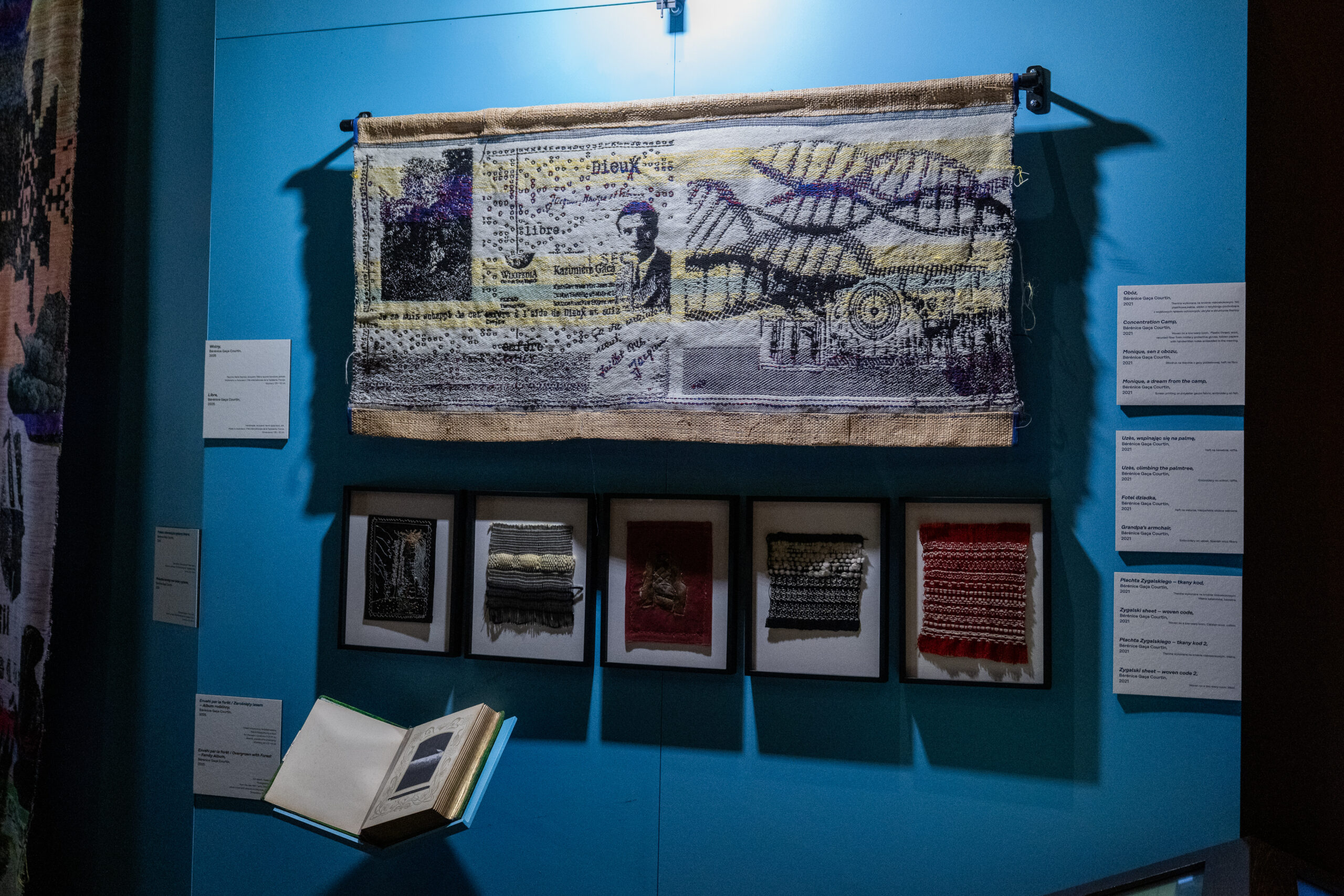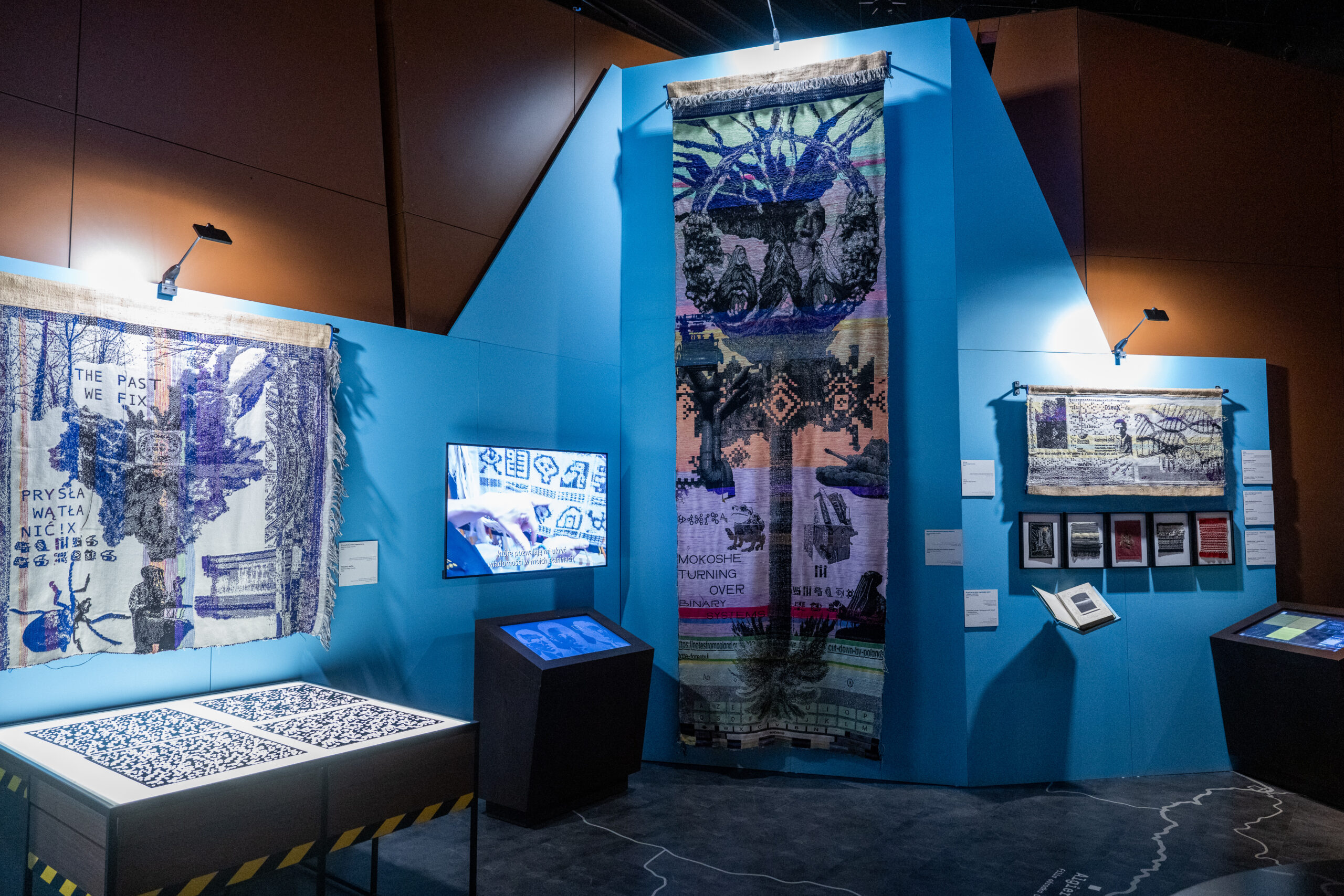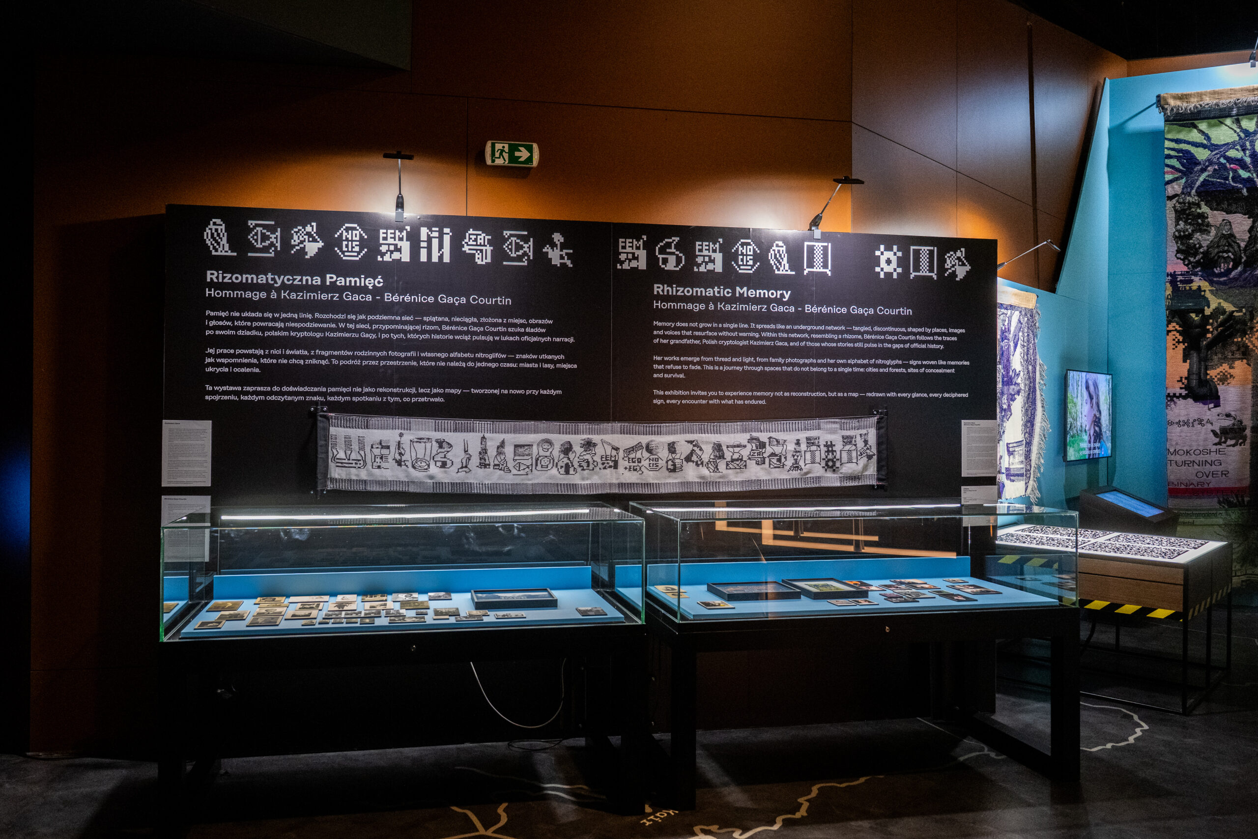 Na wystawie, która ma miejsce w samym sercu ekspozycji głównej Centrum Szyfrów Enigma prezentowane są wielkoformatowe tkaniny artystyczne oraz niewielkie, intymne miniatury-kody, w których artystka zapisuje własny alfabet pamięci.