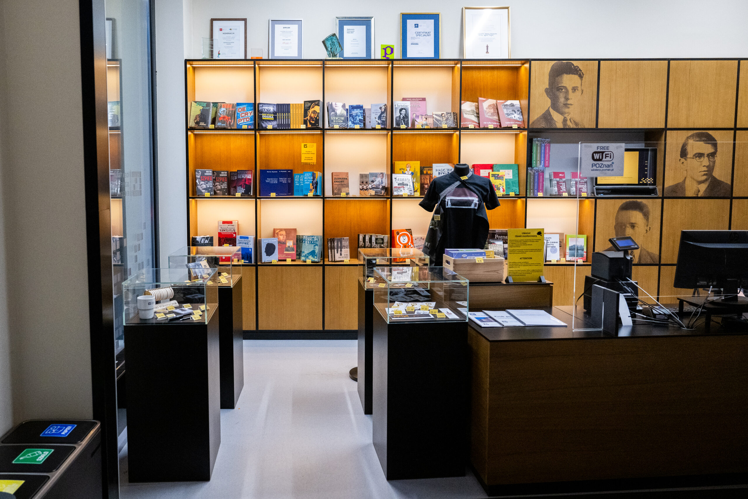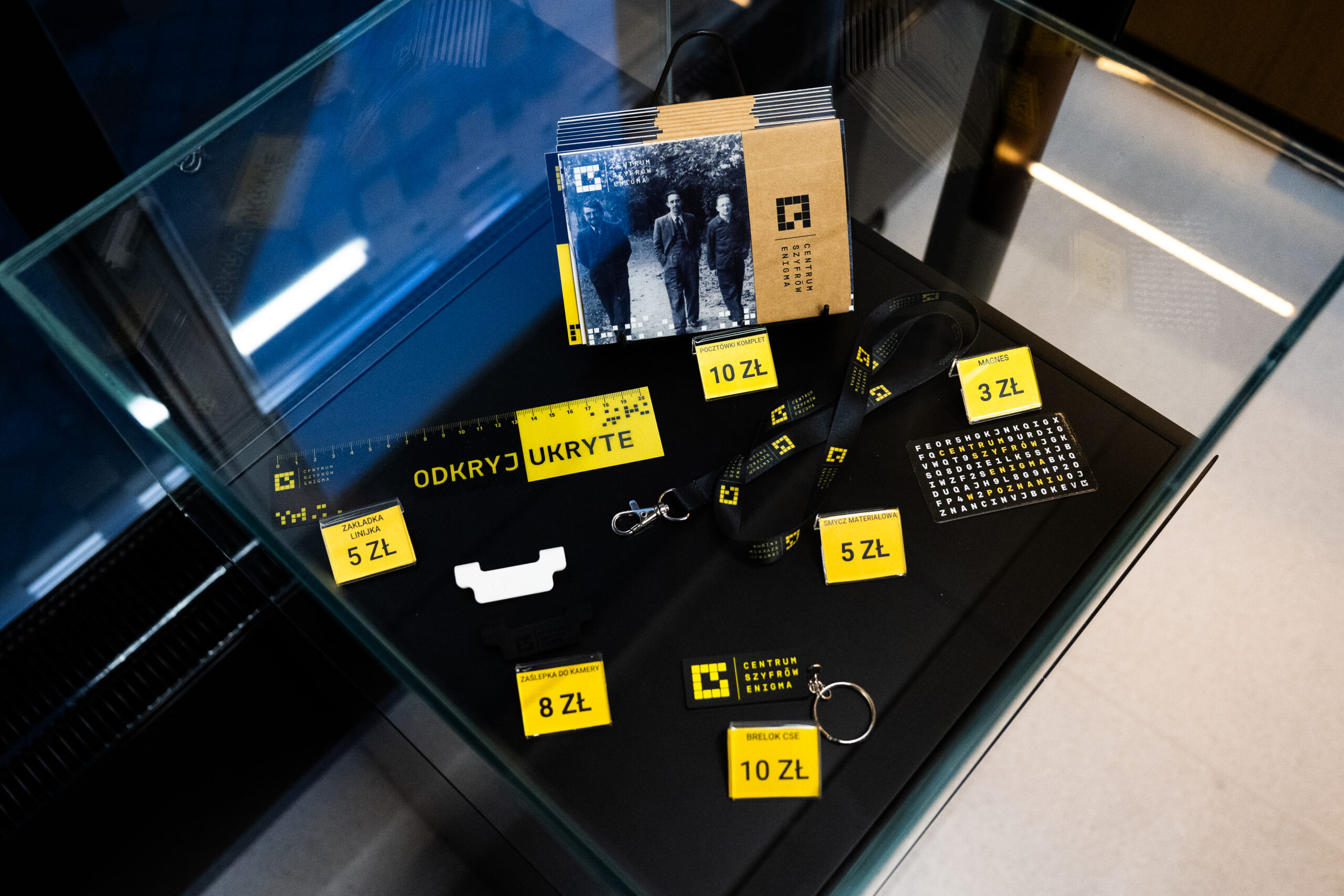 • Na terenie Centrum Szyfrów Enigma znajduje się sklep z pamiątkami, gdzie możesz zakupić gadżety reklamowe Centrum Szyfrów Enigma, książki, pocztówki i inne.